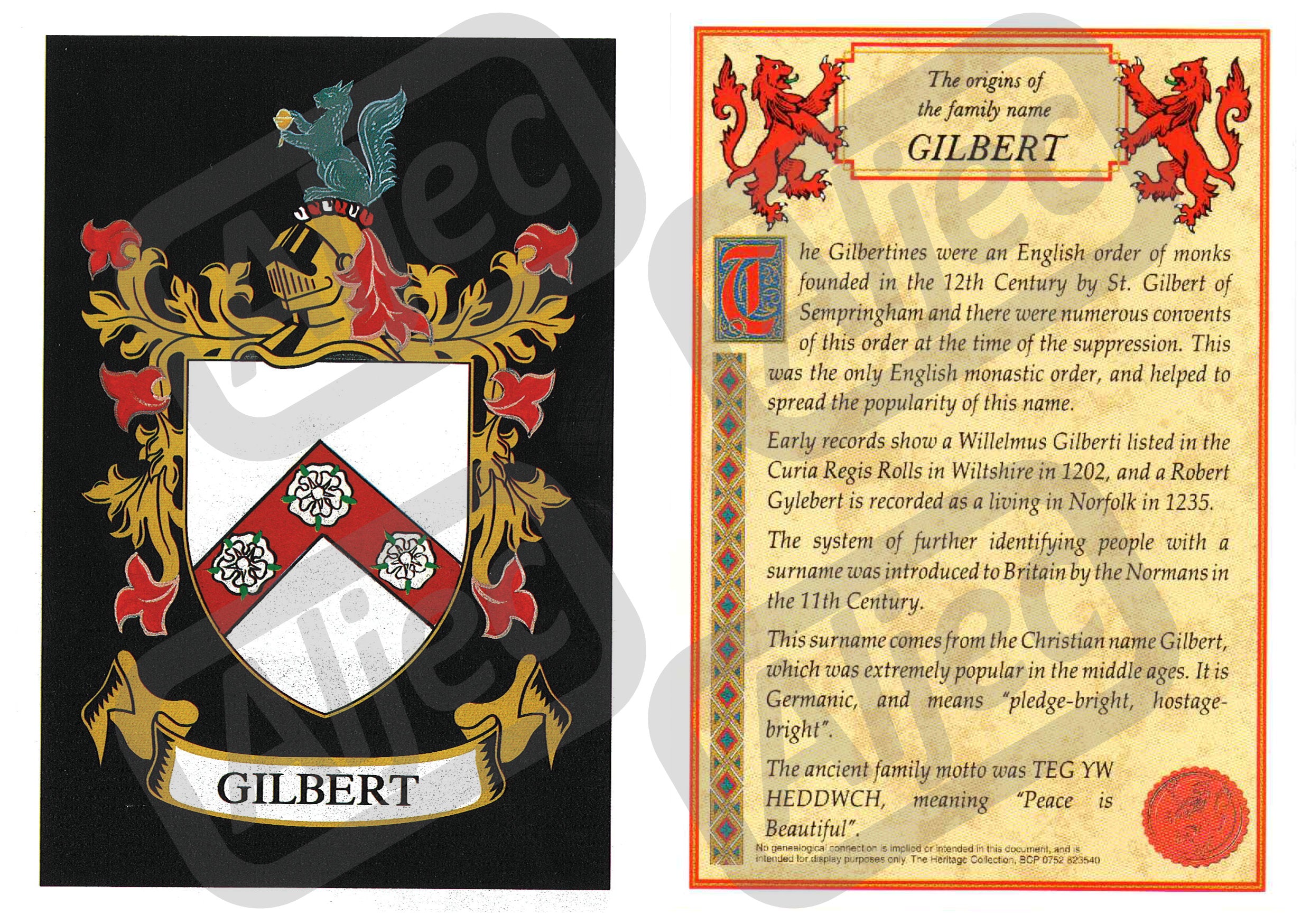 Family Coat of Arms Postcard - Gilbert