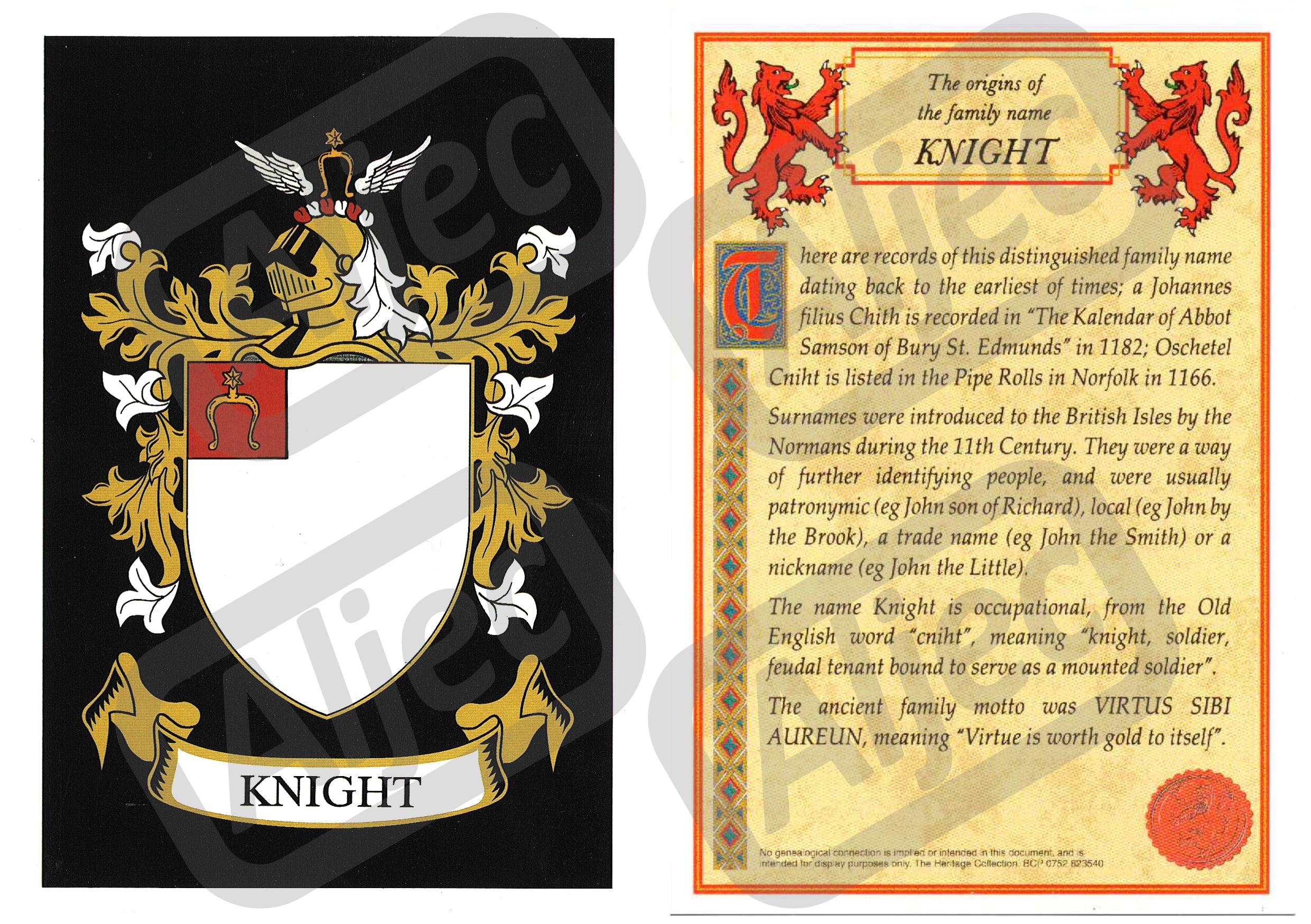 Family Coat of Arms Postcard - Knight