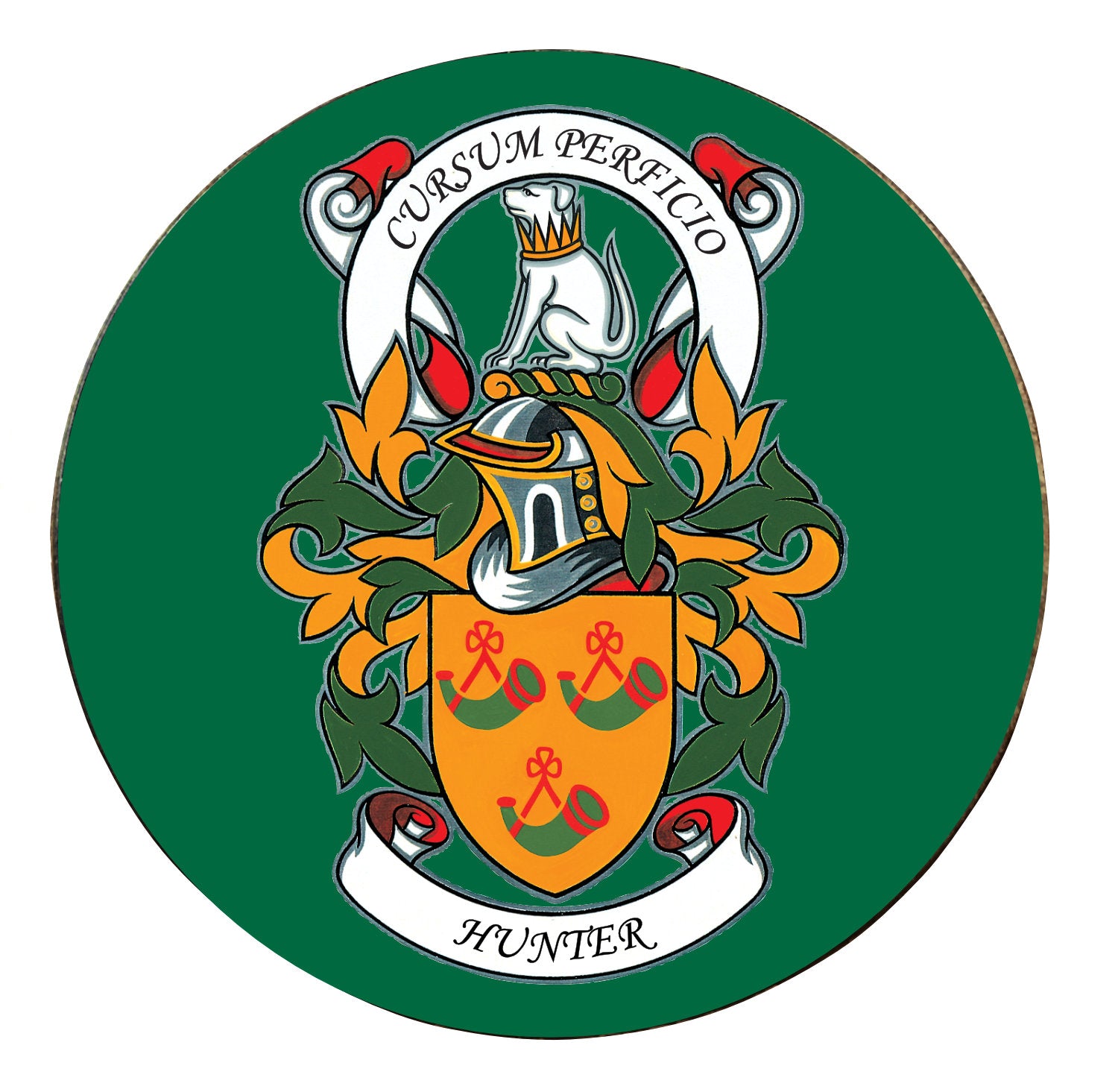 Heraldic Family Name Coaster - Hunter is backordered and will ship as soon as it is back in stock.