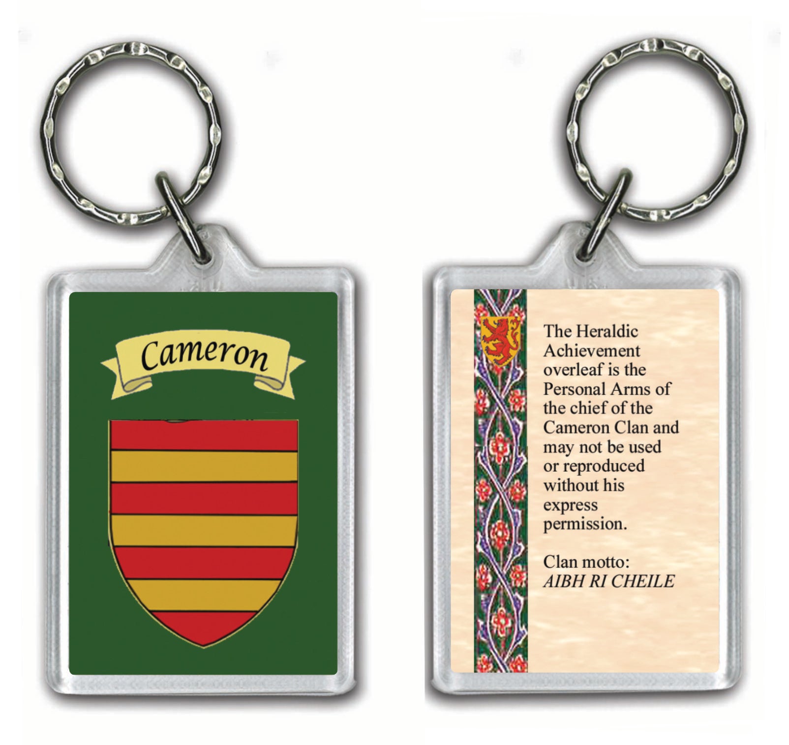 The reverse side includes the Cameron Clan motto - "Aibh Ri Cheile".