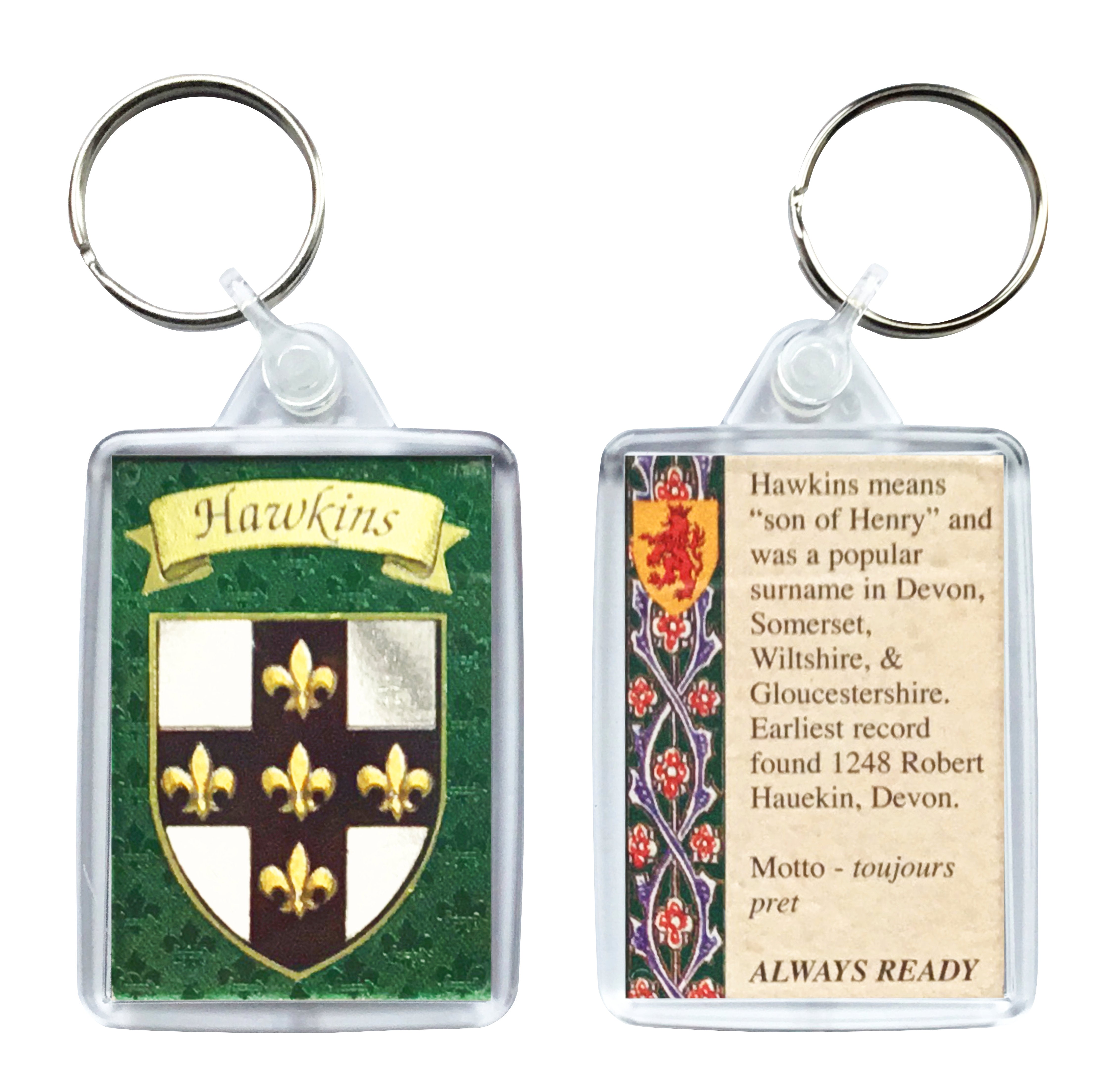 The reverse side shows a beautifully decorated introduction to the history of the surname, including the family motto.