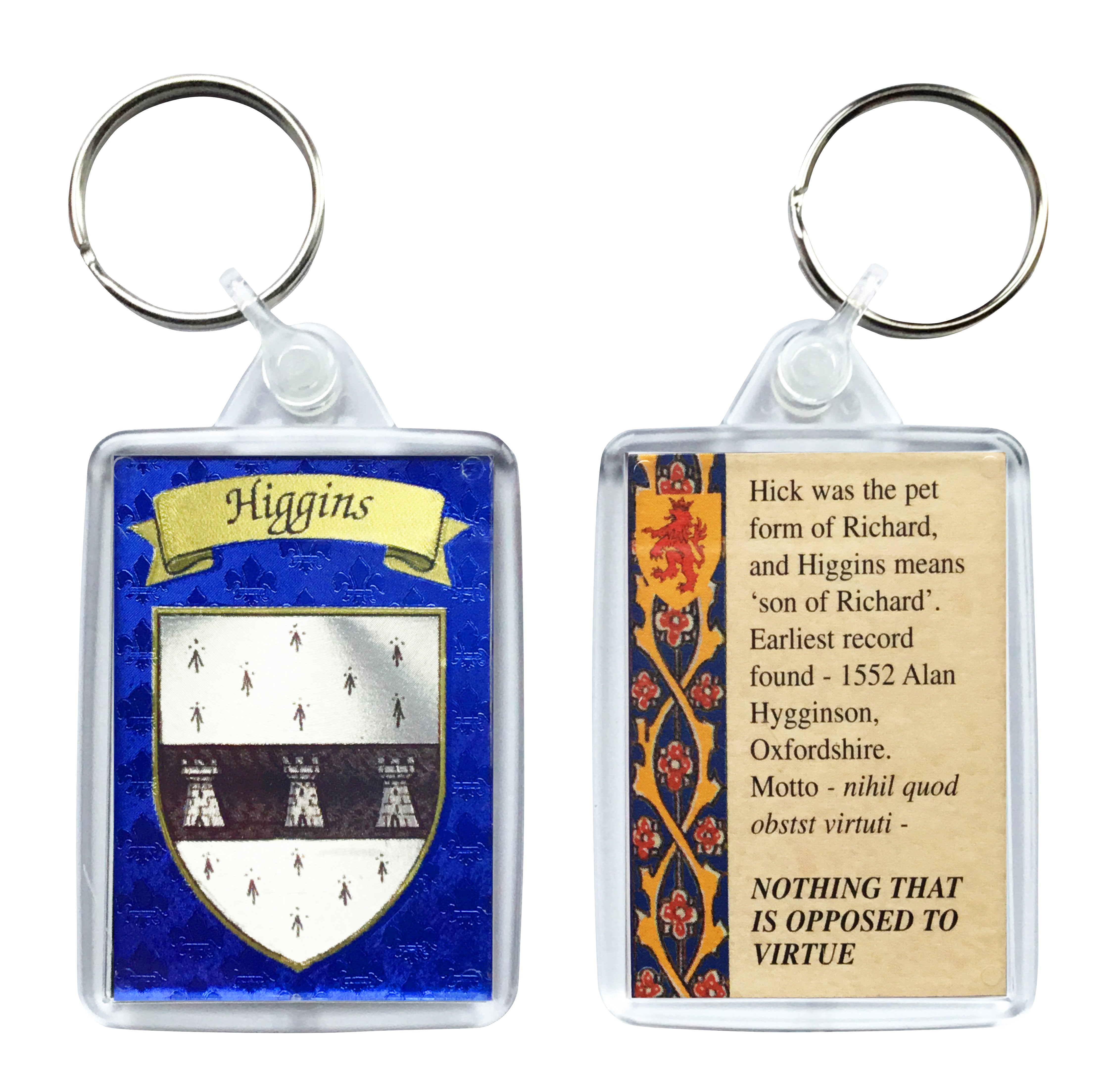The reverse side shows a beautifully decorated introduction to the history of the surname, including the family motto.