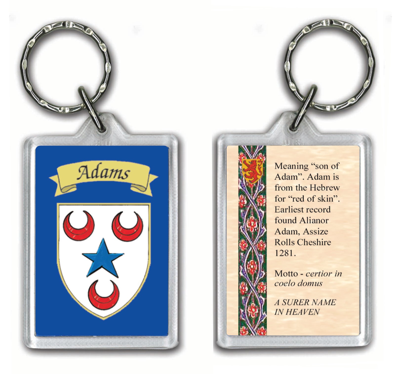 Adams Family Coat of Arms Keyring is backordered and will ship as soon as it is back in stock.