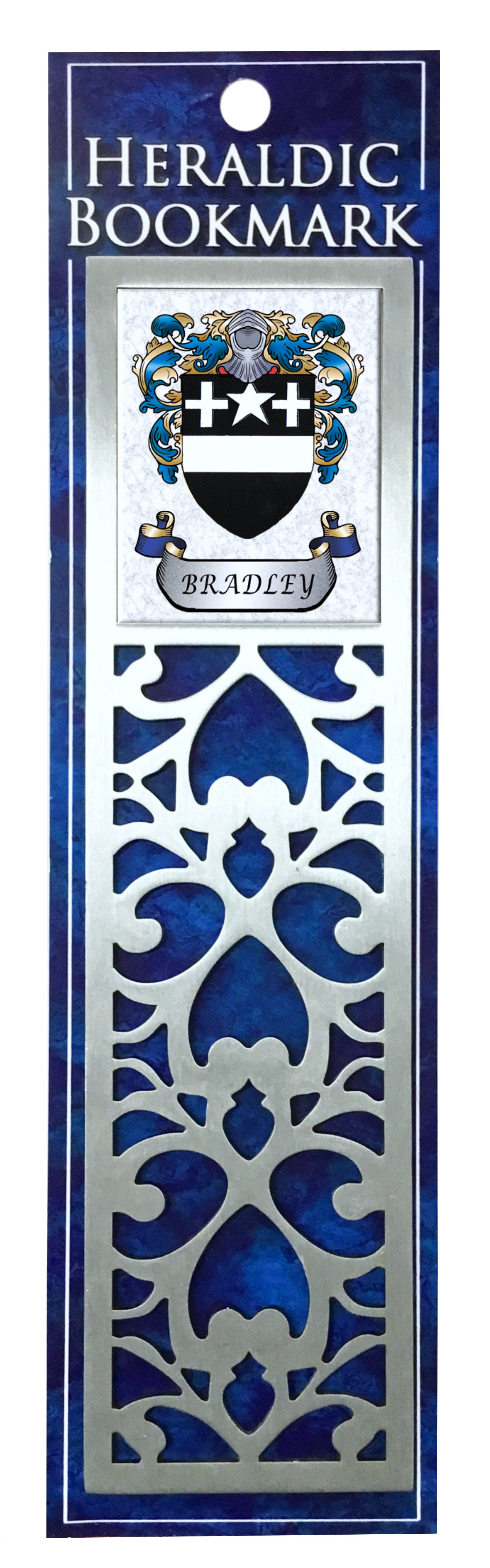 Bradley Heraldic Family Name Metal Bookmark